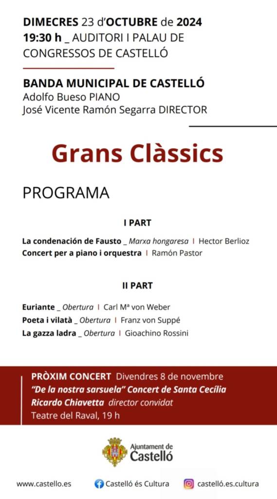 El programa se completará con obras de Berlioz Carl María von Weber, Franz von Suppé i Gioachino Rossini.