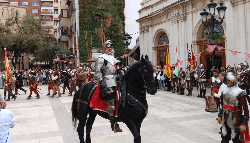 El desfile ha comenzado en la avenida Lidón y ha recorrido las principales calles del centro, haciendo una parada especial en la plaza Mayor para la recepción de las autoridades. Los asistentes han podido disfrutar de una detallada representación de la vida militar del siglo XVI, con soldados armados con picas y espadas, jinetes a caballo, y músicos que han evocado las marchas de la época con tambores y pífanos.