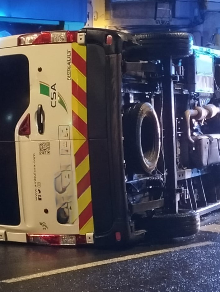 La lluvia fue, al parecer, el motivo del vuelco de la ambulancia en la confluencia de Ronda Mijares con Pérez Galdós