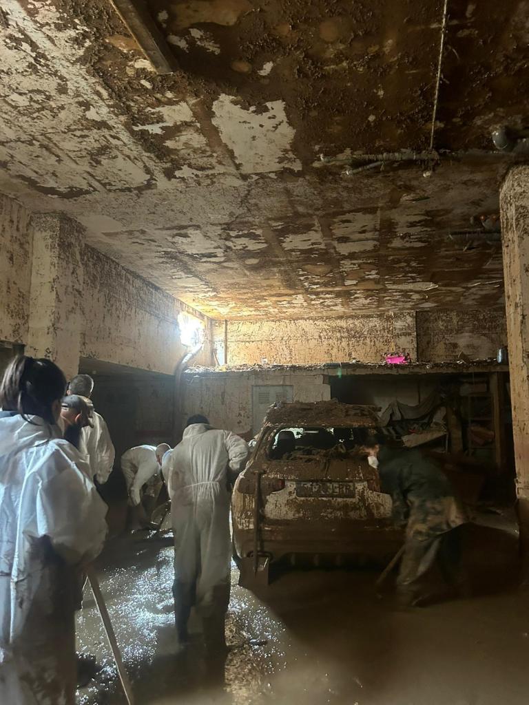 Durante la jornada de hoy las labores se han centrado en la limpieza de garajes y plantas bajas en viviendas particulares del municipio valenciano afectado por las consecuencias de la DANA.