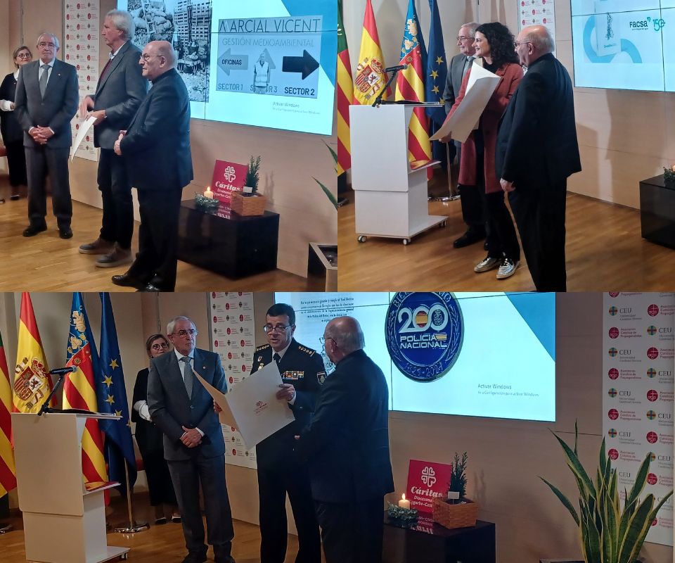 En este acto se ha distinguido a más de 40 empresas y entidades que colaboran con Cáritas Diocesana y se ha reconocido especialmente a la Policía Nacional en su bicentenario, a FACSA que ha cumplido sus 150 años de existencia y a la empresa de gestión de residuos Marcial Vicent en su 70 aniversario.