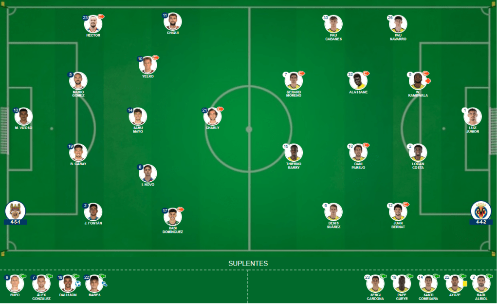 En el inicio de la segunda parte, Marcelino dio entrada a Sergi Cardona y poco más tarde a Pape Gueye. El objetivo era encontrar la manera de hacerle daño al conjunto gallego.