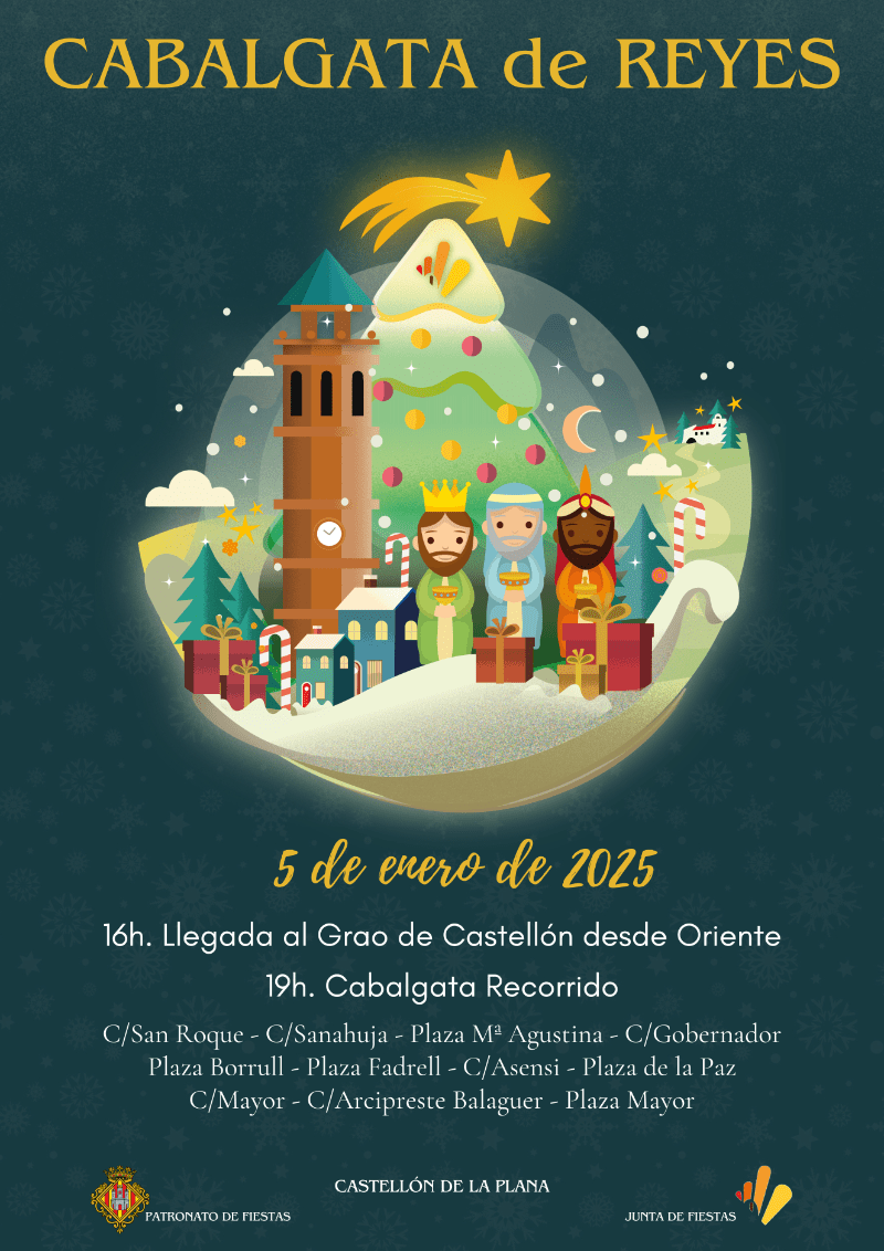 Para tal evento se ha conformado una completo itinerario que comenzará a las 15:00h con la animación en la Plaza del Mar en el Grao hasta el desembarco de los reyes a las 16:00 con la visita a la Tenencia de Alcaldía. Asimismo, a las 16:00h también está prevista la llegada de los Reyes a los barrios periféricos y a las 19:00h la cabalgata dará comienzo desde la calle Sanahuja.