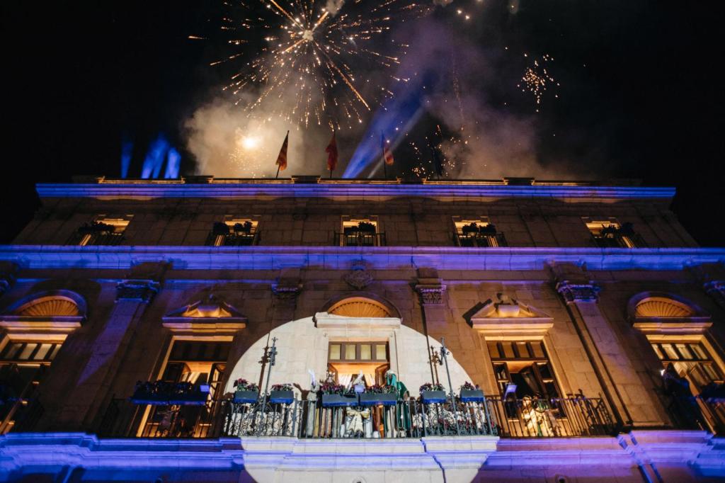 Posteriormente, los Reyes Magos han subido al Ayuntamiento y accedido al balcón, desde donde han dirigido unas palabras a todos los niños que se encontraban con sus familias en la Plaza Mayor, algunos de los cuales han culminado este acto tan especial, saludando a Sus Majestades en el propio consistorio.