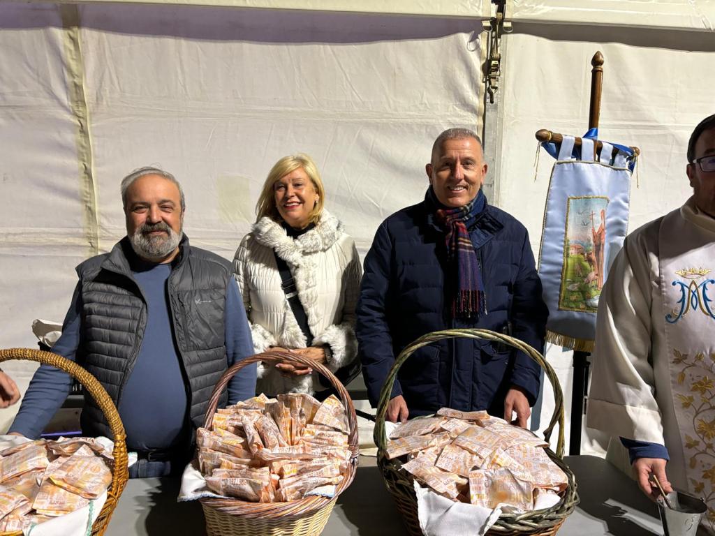 El teniente de alcalde del Distrito Oeste, Vicent Sales, la concejala de Gente Mayor, Clara Adsuara, y el concejal de Salud Pública, Luciano Ferrer, han participado en la tradicional bendición de animales y reparto de «coquetes» de esta tarde.