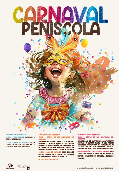 La concejalía de Fiestas del Ayuntamiento de Peñíscola ha presentado los actos previstos para la celebración del Carnaval en el municipio. Los próximos días 21, 22 y 23 de febrero, la Ciudad en el Mar acogerá las distintas actividades previstas para la fiesta más desenfadada del año.
