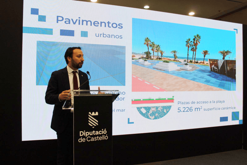 En primer lugar, se ha referido al uso de cerámica en pavimentos urbanos, haciendo referencia a la remodelación del Paseo marítimo, Avda. Ferrandis Salvador, donde se están instalando un total de 5.226 m2 de superficie cerámica. Toledo ha destacado que “hacemos uso de la cerámica castellonense en un lugar tan emblemático y significativo para el turismo como es el distrito marítimo”.
