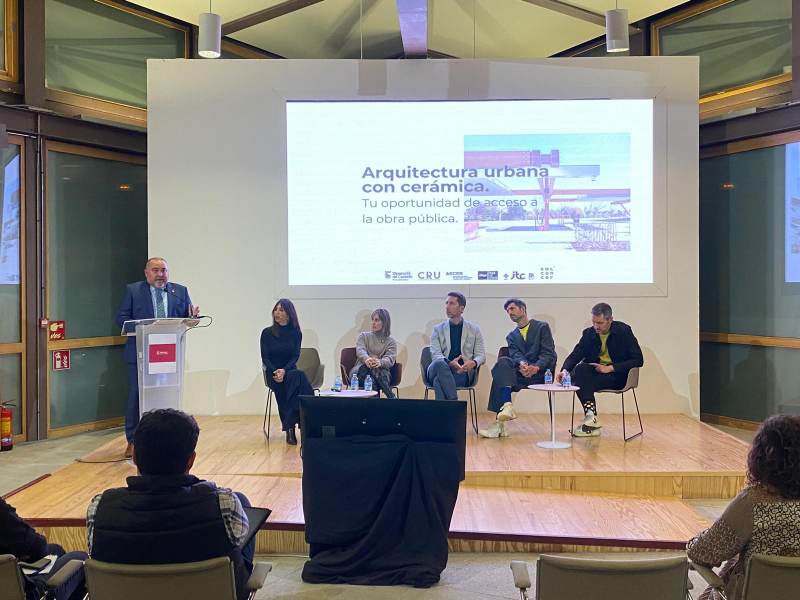 Por su parte, la arquitecta y jefa del Área de Promoción Cerámica, Silvia Pérez, fue la encargada de explicar el funcionamiento del CRU, las categorías de espacios y los premios a los que optan, así como los requisitos para poder participar. Mientras que Luís Navarro y Carlos Sánchez, del estudio La Errería de Alicante y ganadores en la III, V y VII edición del CRU, hablaron de su experiencia y visión del certamen y de los proyectos que han llevado a cabo gracias al CRU.