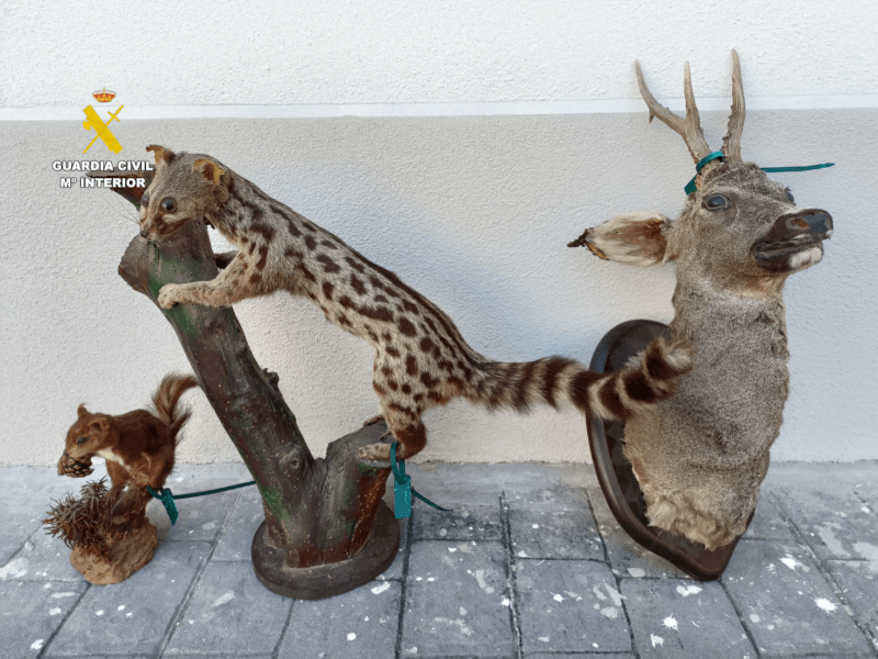 El Seprona de la Guardia Civil de Segorbe, unidad especializada en delitos medioambientales, llevó a cabo esta actuación en Segorbe, tras detectar el pasado 23 de febrero la oferta de varios ejemplares de fauna vertebrada en páginas de compraventa por internet. Entre ellos se encontraban una cabeza de corzo (Capreolus capreolus), una de jabalí (Sus scrofa) y una gineta (Genetta genetta), todos ellos naturalizados.
