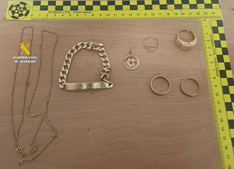 Gracias a la intervención del Puesto de la Guardia Civil de Alcalá de Xivert y con apoyo del Área de Investigación del Puesto Principal de la Guardia Civil de Vinaroz, se logró recuperar parte de las joyas sustraídas valoradas en más de 5.600 euros que fueron entregadas en depósito judicial, a la espera de ser devueltas a los herederos legales.