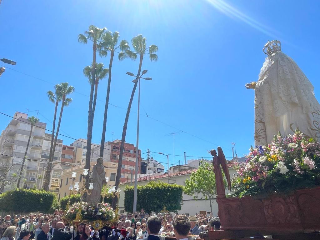 La teniente alcalde del Grao, Ester Giner, ha participado en este momento tan significativo en la Semana Santa de la ciudad, junto a varios centenares de gaureros que han disfrutado del Encuentro entre la Virgen de Pascua y del Cristo Resucitado en la plaza Virgen del Carmen.