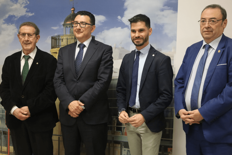 Pie de foto, de izquierda a derecha: Presidente de FERRMED, Joan Amorós: director del puerto de Castellón, Manuel García: concejal de Movilidad del Ayuntamiento de Castellón, Cristian Ramírez y el vicepresidente de la Asociación de Ingenieros Industriales, Juan Vicente Bono,