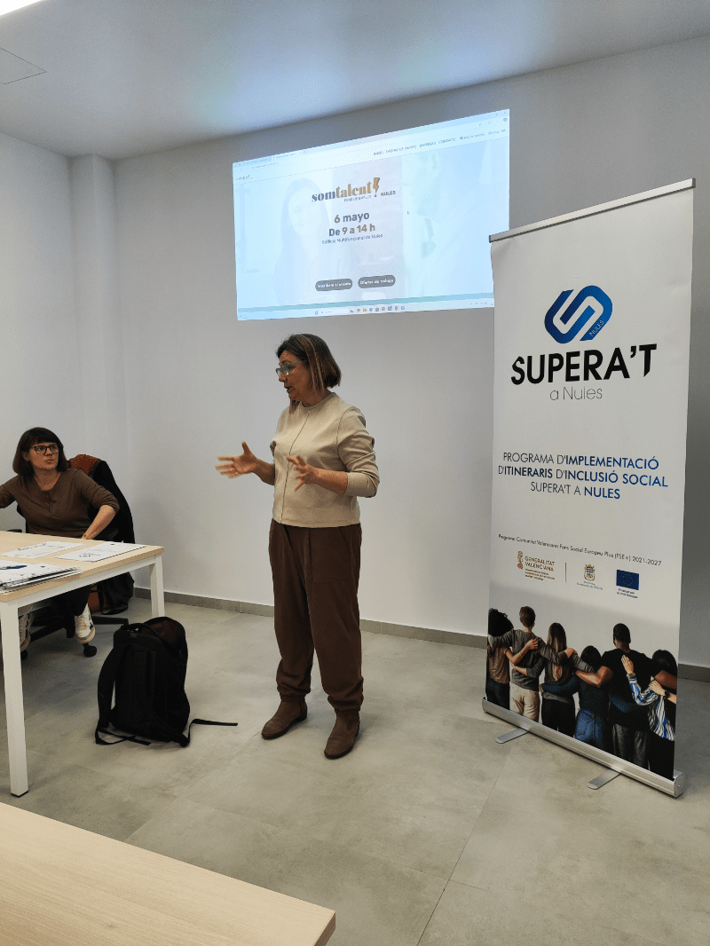 El programa Supera’t a Nules consiste en un programa de itinerarios integrados para la inserción social de personas en situación o riesgo de exclusión social, actuación cofinanciada por la Unión Europea a través del Programa Operativo del Fondo Social Europeo Plus (FSE+) de la Comunitat Valenciana (2021-2027).
