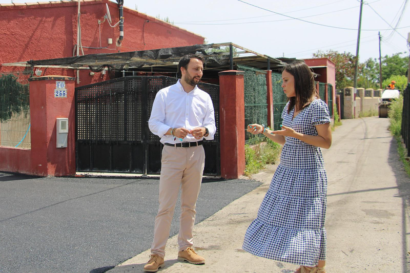 El concejal de Urbanismo y Servicios Públicos en el Ayuntamiento de Castellón, Sergio Toledo, y la teniente alcalde del Grao, Ester Giner, han acudido a las inmediaciones del Camino La Coloma, La Moixeta y entrador Pasparis, en la Marjalería, donde actualmente se han llevado a cabo obras de asfaltado por importe de 93.000 euros.