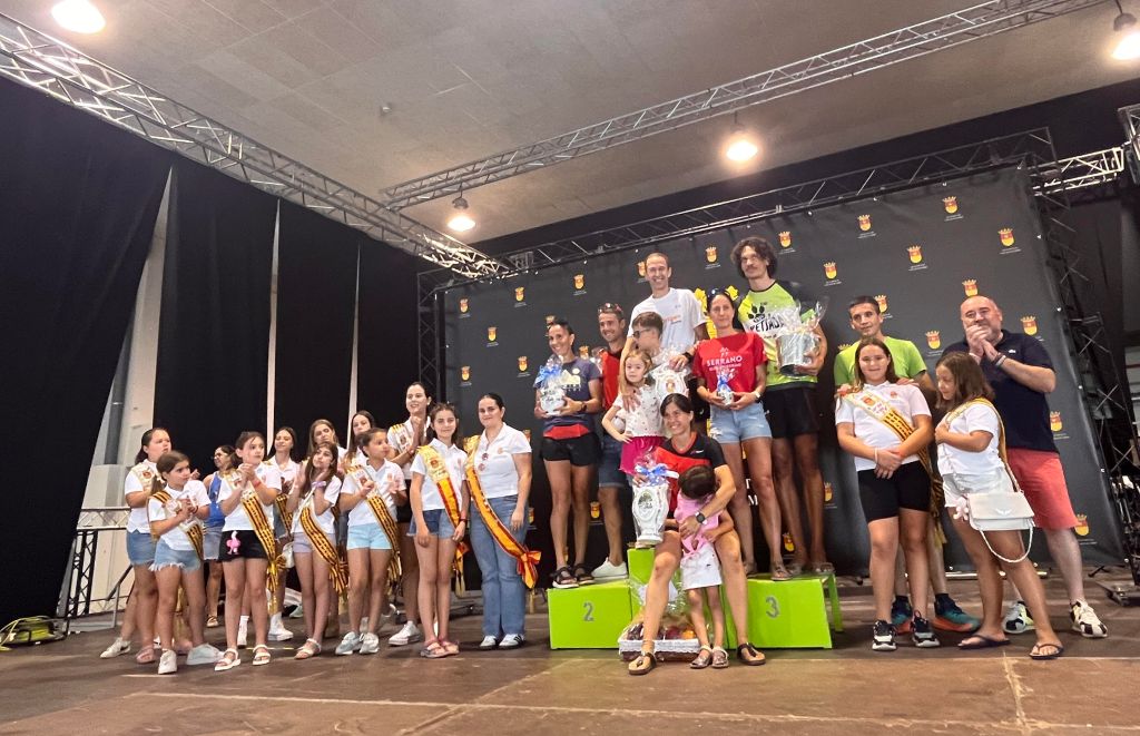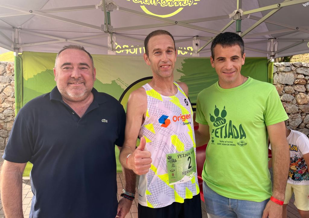 Remito fotos de los podiums masculino y femenino de ambas pruebas, así como una imagen del alcalde de Sant Joan de Moró, Vicente Pallarés, y del concejal de Deportes, David Alfanjarín, con el ganador de la XXIV Petjada, Fernando Ruiz