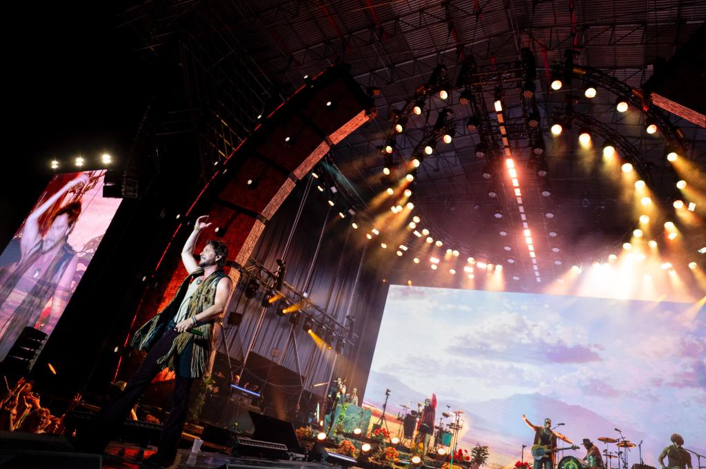 Perfecto el espectáculo con el que acompaña su actuación, que también tuvo que ver en conseguir una noche inolvidable.