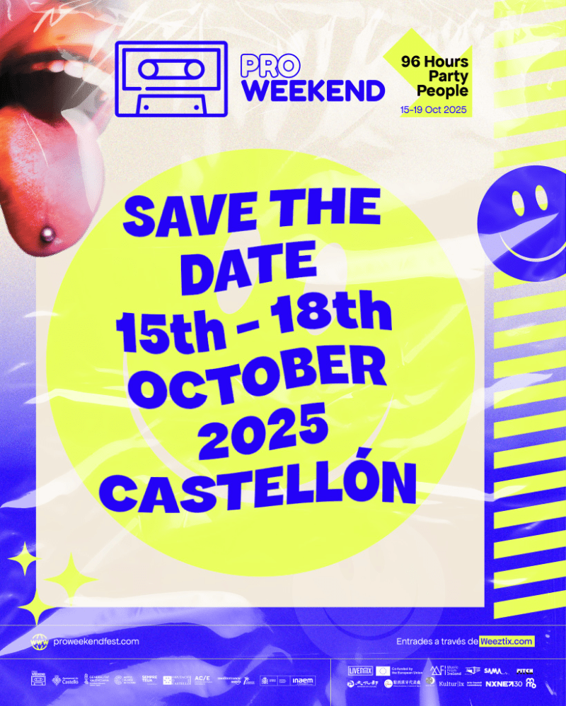 La undécima edición de Pro Weekend ya tiene fechas. El Showcase & Conference Festival se desarrollará en diferentes espacios de Castelló de la Plana entre el 15 y el 18 de octubre de 2025. Como es habitual, su programación combinará actuaciones musicales de grupos y solistas de diferentes países con áreas de formación, ya sea a través de charlas dirigidas a los profesionales inscritos o en el denominado Pro Weekend Campus-Get Ready To Export, financiado por la Unión Europa a través de LiveMX con el objetivo de ayudar al crecimiento de los músicos participantes.