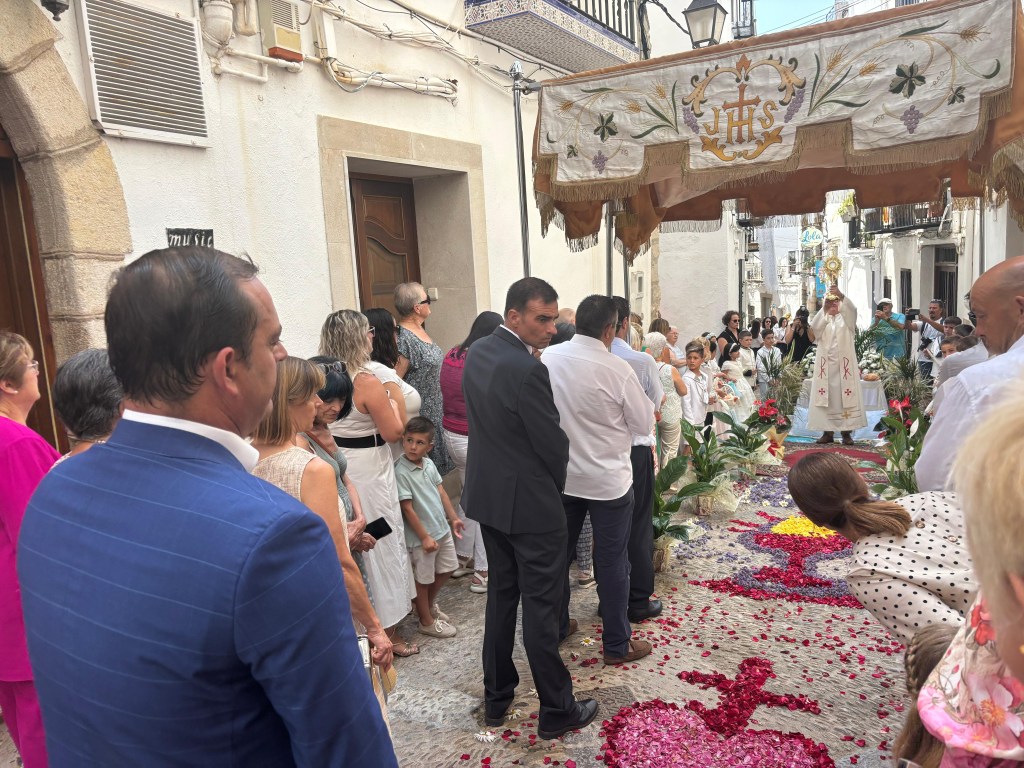 Peñíscola ha celebrado hoy la festividad de Corpus Christi con la eucaristía y la tradicional procesión por las calles del casco antiguo, protagonizada por la Custodia bajo Palio y las niñas y niños que han tomado este año su Primera Comunión.
