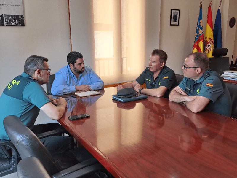 Asimismo, en esta reunión de trabajo, que se celebra de manera periódica, también se ha hablado de otras cuestiones relacionadas con la seguridad ciudadana del municipio. David García ha aprovechado para solicitar más presencia de agentes de la Guardia Civil en la localidad, “somos conscientes y la Guardia Civil también de los hurtos tanto en viviendas como en el campo registrados en los últimos meses, por tanto habrá más presencia de la Guardia Civil incluida la de paisano en nuestro municipio, ya que nuestro término es muy grande y con las patrullas de la Policía Local no es suficiente para vigilar la población y todo el término municipal”, explica el Alcalde. Además, personal voluntario de Protección Civil de Nules también patrullará por las noches por el término municipal, con el objetivo de vigilar el campo.