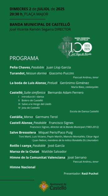 Merecidísimo homenaje a la Banda Municipal por su centenario que ofrecerá un concierto, preparado por José Vicente Ramón Segarra, basado en las tradiciones y raíces castellonenses.