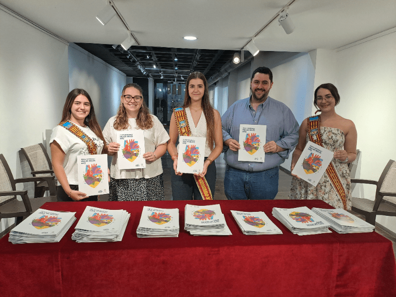 La Reina de la Vila de Nules, Laura Gómez Recatalá, y las damas Ioana Rodríguez, dama de la Caixa Rural, y Noelia González, dama del raval de Sant Xotxim junto al Alcalde, David García, y la Concejal de Fiestas, Blanca Silvestre, han repartido hoy el programa de las fiestas de Sant Roc y patronales en honor a Sant Bartomeu a los vecinos y vecinas de la localidad.