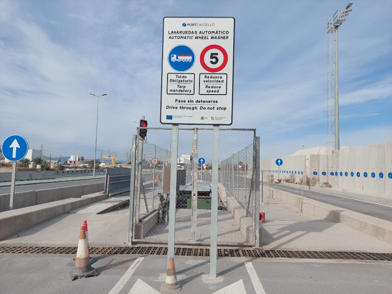 La instalación de los lavarruedas, operativa desde 2020, fue realizada con una inversión total de más de 514.000 euros, y es una más de las medidas impulsadas por la Autoridad Portuaria de Castellón para mitigar la dispersión de material particulado generada por el tráfico de camiones que cargan y descargan mercancías. Con el objetivo de evitar el arrastre de partículas del suelo hacia el ambiente, estos equipos de lavado proyectan agua a presión sobre las ruedas y bajos de los camiones, contribuyendo a la reducción de la huella de carbono en el área.
