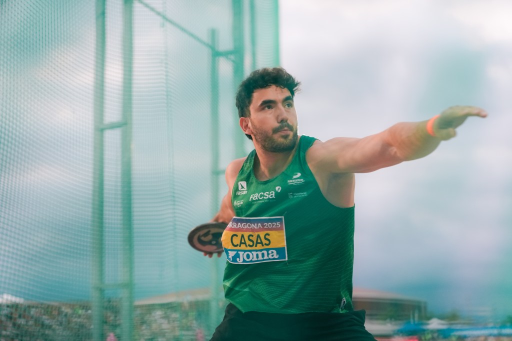 El medallero se abrió en la primera jornada con Diego Casas, campeón en lanzamiento de disco con una marca de 61.86 m. Esta victoria pone el broche a una gran temporada para él, a pesar del cambio de entrenador y su reciente traslado a Roma para entrenar con un técnico italiano.