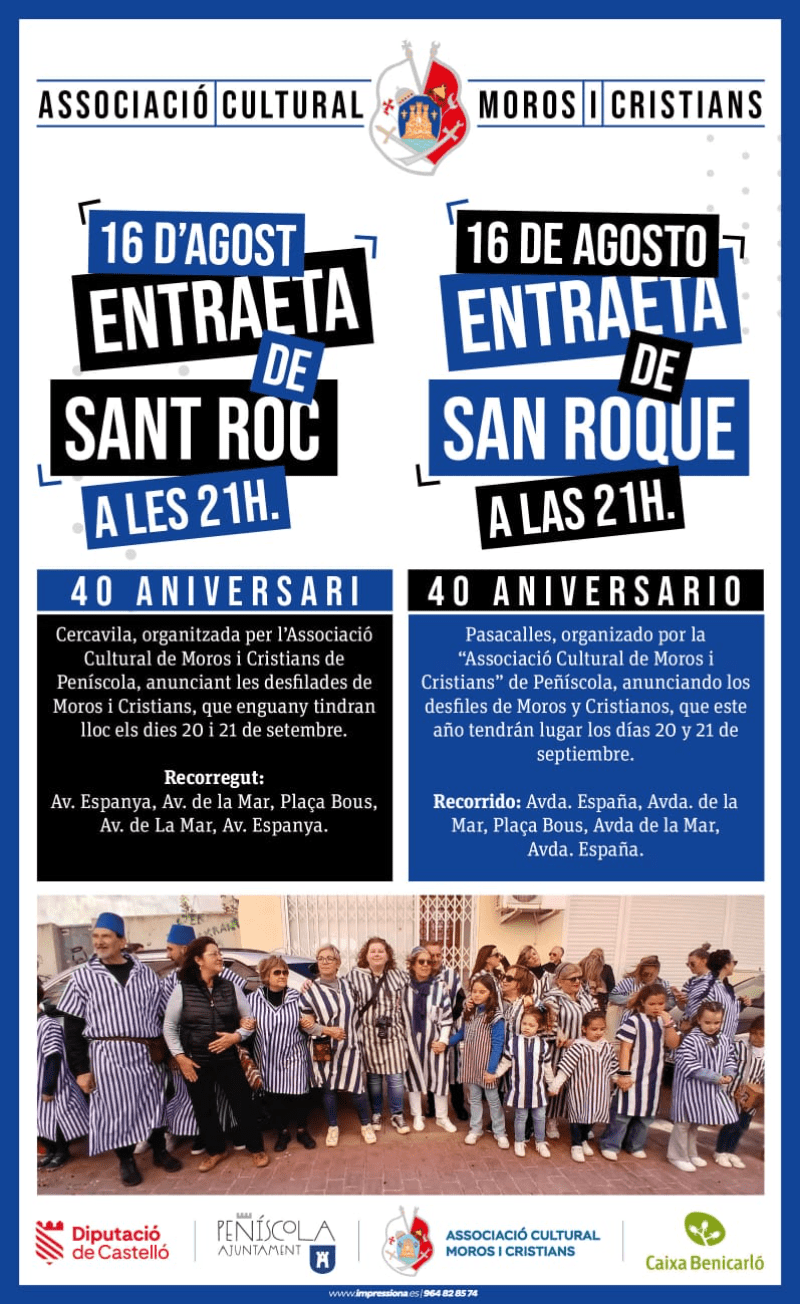 “La Entraeta de San Roc”, supone un aperitivo festivo, para dar a conocer a turistas y visitantes las fiestas de Moros y cristianos, que se celebraran los días 19,20 y 21 de septiembre.