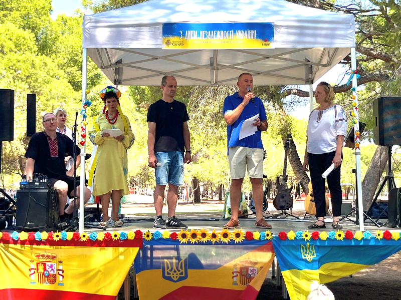 Castellón ha conmemorado el Día de la Independencia de Ucrania en un acto celebrado en el Parque del Pinar del Grao, con la participación del concejal de Relaciones Institucionales en el Ayuntamiento, Vicent Sales, junto a la Asociación de Ucranianos de Castellón y provincia “Kalyna”, presidida por Oksana Vovk Simón, como entidad organizadora, con la colaboración del Ayuntamiento de Castellón a través del Negociado de Convivencia Social e Interculturalidad.