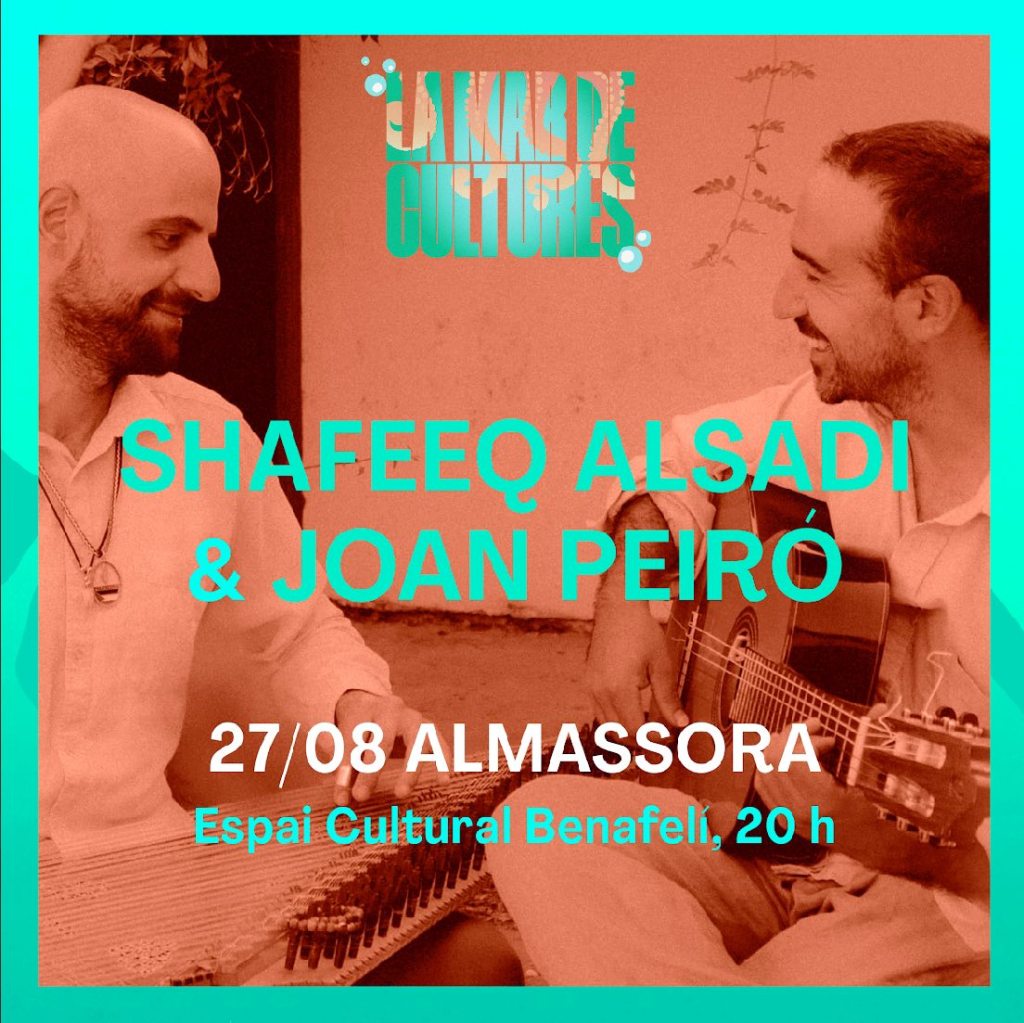 La Mar de Cultures llega a su final en esta edición de 2025 con la doble actuación del dúo integrado por el músico palestino Shafeeq Alsadi y el valenciano Joan Peiró. Un concierto en que se revisa la tradición musical del mar Mediterráneo conectando los respectivos orígenes de ambos protagonistas. La primera de sus dos citas tendrá lugar el martes 26 de agosto en el Espai Natura de Torreblanca, mientras que al día siguiente, miércoles 27, estarán en el Espai Cultural Benafelí de Almassora. El inicio está previsto a las 20:00, con libre acceso.