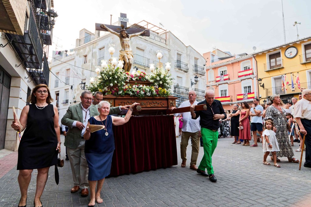 El desfile de peñas, el Gran Chupinazo y los concursos de paellas o repostería han sacado a la calle a vecinos y visitantes en un gran ambiente de fiesta, que no ha olvidado en ningún momento el motivo de las celebraciones: rendir devoción a su patrón, el Santísimo Cristo de la Misericordia, y a la Virgen de la Cueva Santa.