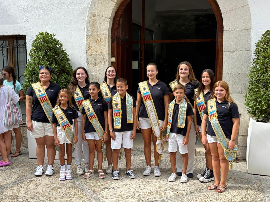 La Reina 2024, Araceli Bayarri, junto a su Corte de Honor, se ha despedido desde el balcón del Ayuntamiento de este año especial, acompañada por el alcalde, Andrés Martínez, el concejal de Fiestas, Ramón Simó y miembros de la corporación municipal.