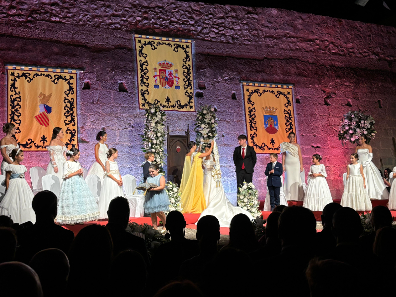 Martínez no pudo esconder su emoción por ser anfitrión en una noche tan mágica y agradeció el apoyo y la labor que realizan la Comisión de Fiestas, Comisión Taurina, Coordinadora de Peñas y todas las entidades locales que hacen posible la celebración de los festejos, así como al concejal de Fiestas, Ramón Simó, por la organización y gestión de los esperados actos. Su felicitación especial fue, como no podía ser de otro modo, para Blanca, que es ya Regina de los festejos.