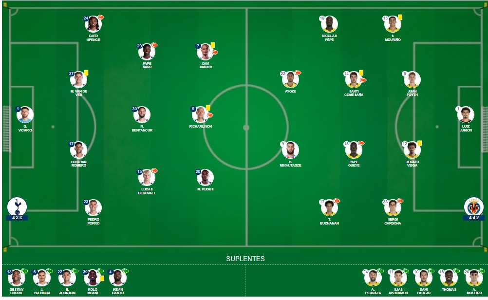 A partir del 70, el Tottenham despertó de su letargo, pero el Villarreal quería seguir dando guerra. En el 85, un tiro directo de falta de Pepe a punto estuvo de hacer subir el empate. Y eso que la jugada estuvo precedida de una controvertida decisión cuando Van de Ven solo vio la amarilla pese a derribar a Mikautadze al borde del área cuando el georgiano era el último jugador.
