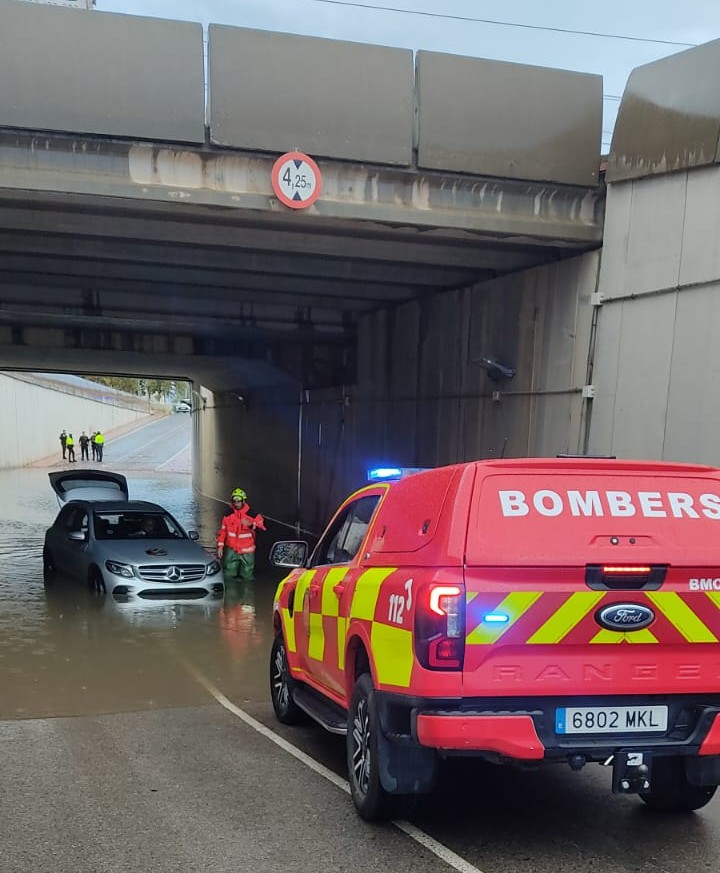 Asimismo, efectivos de los Bomberos han actuado en el rescate de varios vehículos que han quedado inmovilizados como consecuencia de la acumulación de agua en diferentes viales.