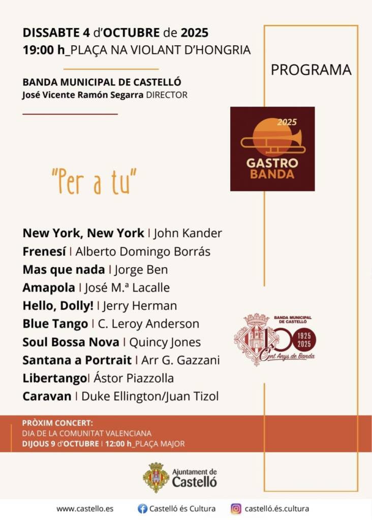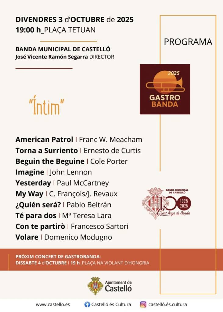 La Banda Municipal de Música, dirigida por José Vicente Ramón Segarra, será la protagonista, junto a su público fiel, del «tardeo» de Castellón