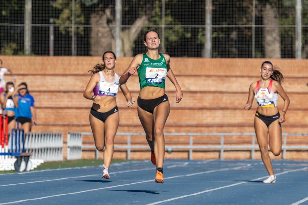 El equipo femenino se subió al primer escalón del podio, logrando una victoria más holgada de 115 puntos, sobre los 99 puntos del Trop-Cuevas de Nerja, que quedo en segunda posición, y los 87 puntos del Atletismo Albacete que cerro el podio femenino del Campeonato. En esta categoría, las victorias en sus especialidades fueron para Rocío Sabater en 600 metros y Nuria Garcia, que en triple logró su m mejor marca personal de 12,47 m. En segunda posición quedaron Inés García en martillo, también con mejor marca personal de 51,98 m, Alexia Pérez en pértiga, Anhara Ortega en peso, Marta Carrión en 300 metros, Mar García en 1.000 metros, con mejor marca personal de 2.58:57 seg, María Ramos en 1.500 m obstáculos y el relevo 4×300 integrado por Iciar Montero, Carol Ahicart, Helga Martí y Nuria Ponte. Finalmente, también se consiguieron cinco terceros puestos gracias a Sara Felip en salto de altura, Ainara Córdova en 100 metros, Giovana Silva en lanzamiento de disco, Paula Mallol en 3.000 metros y Helga Martí en jabalina, con mejor marca personal de 30,05 m.