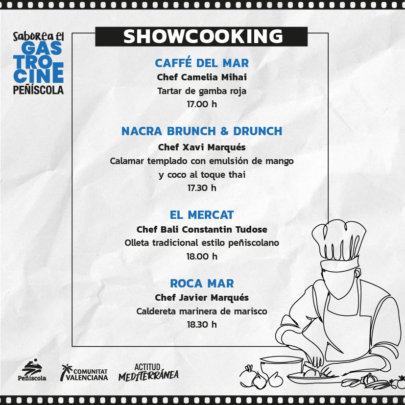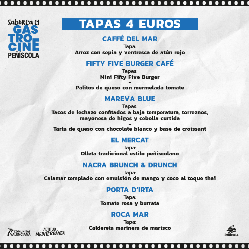 El área de Turismo del Ayuntamiento de Peñíscola propone este sábado día 25 de octubre una cita con la gastronomía local en una jornada que incluirá degustación de distintas tapas, show cookings y talleres de cocina para los más pequeños. Los chefs de los restaurantes Café del Mar, Fifty Five Burguer Café, Mareva Blue, el Mercat, Nacra Brunch & Drunch, Porta d’Irta y Roca Mar protagonizarán este evento culinario que arrancará a las 11.00h y se clausurará a las 21.00h. Por sólo cuatro euros por tapa se podrán degustar una decena de recetas como el arroz con sepia y ventresca de atún rojo, las mini fifty-five burguers, los palitos de queso con mermelada de tomate, los tacos de lechazo confitados a baja temperatura, torreznos y mayonesa de higos y cebolla encurtida, la tarta de queso con chocolate blanco y base de croissant, la olleta al estilo peñiscolano, el calamar templado con emulsión de mango, la ensalada de burrata con tomate rosa o la caldereta marinera de marisco.