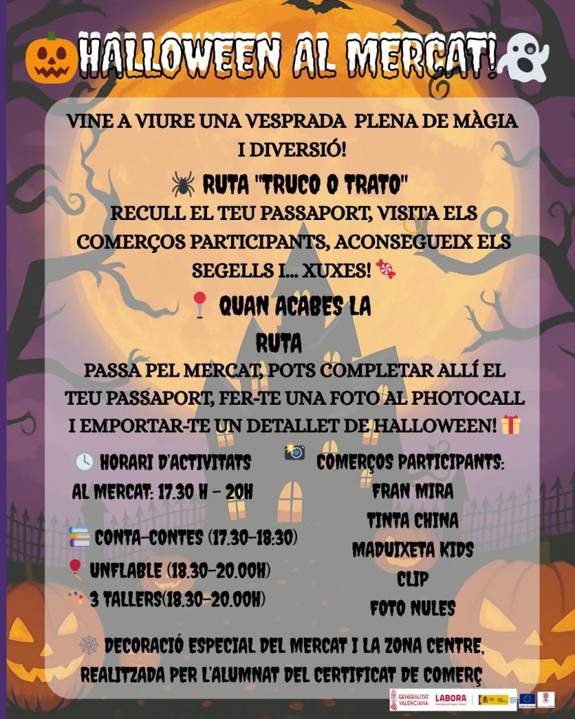 Así mismo, como novedad este año los más pequeños también podrá disfrutar de actividades para ellos. “Halloween al mercat” se denomina la programación que ha organizado el alumnado y personal docente del Certificado de Comercio del programa T’Avalem junto con la Concejalía de Infancia.