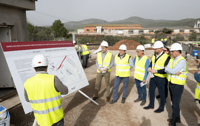 Dentro de esas obras se incluye la ampliación de la estación depuradora de Santa Magdalena de Pulpis, cuyos trabajos se encuentran a pleno rendimiento. Unos avances comprobados por el vicepresidente y responsable de Infraestructuras, Héctor Folgado, y el diputado del Ciclo Integral del Agua, Iván Sánchez, quienes han visitado este viernes la actuación que se está llevando a cabo en una infraestructura que se construyó en 1985 y que presentaba una serie de deficiencias que requerían de una solución.