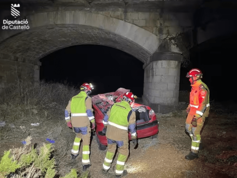El vehículo cayó desde un puente a una rambla seca sobre las 22 horas del pasado sábado.
