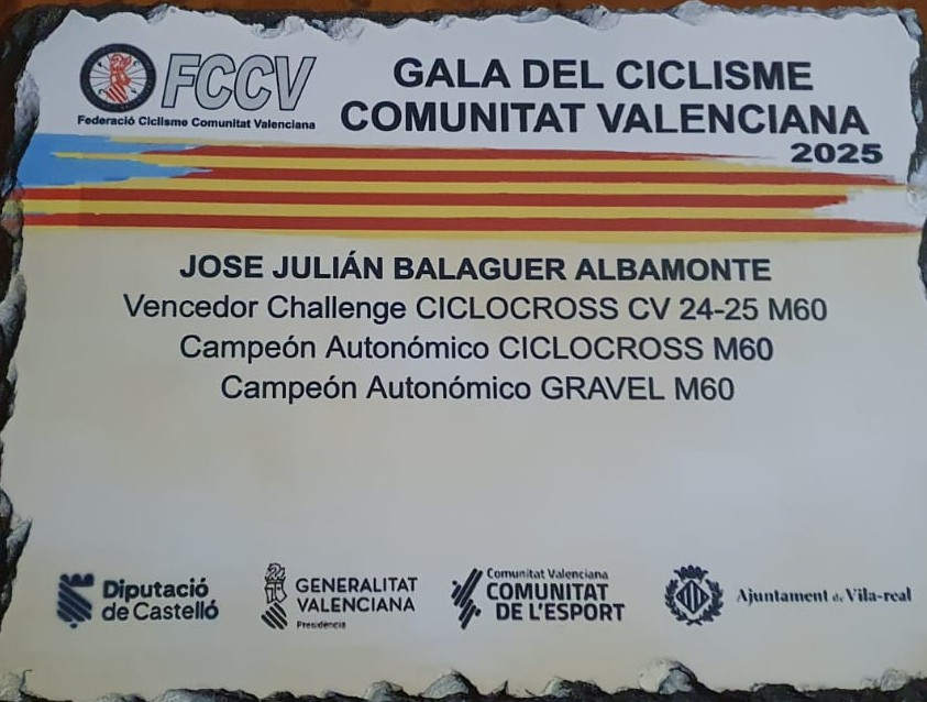 En Vila-real se ha celebrado este año la Gala del ciclismo de la Comunidad valenciana donde se les reconoce los triunfos de la temporada 2025 a los Campeones de todas las categorías y de las diferentes modalidades de ciclismo.