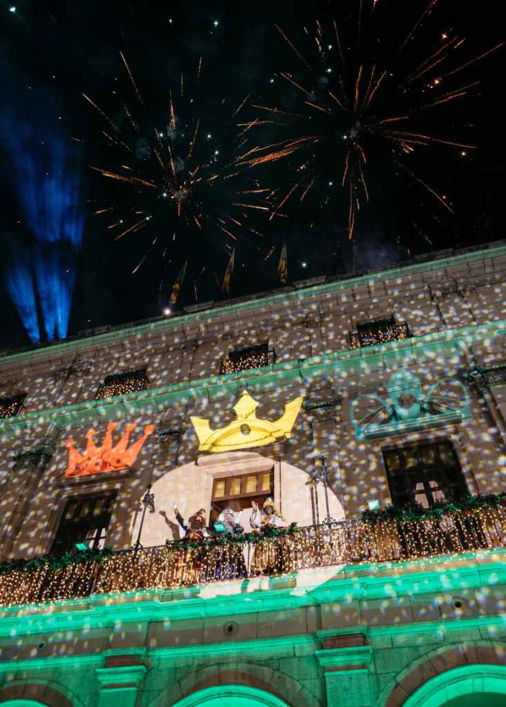 Posteriormente, los Reyes Magos se dirigieron a los niños congregados en la Plaza Mayor desde el balcón del Ayuntamiento y, para finalizar el desfile, se trasladaron al escenario instalado en la plaza, donde atendieron las peticiones de regalos de los asistentes.