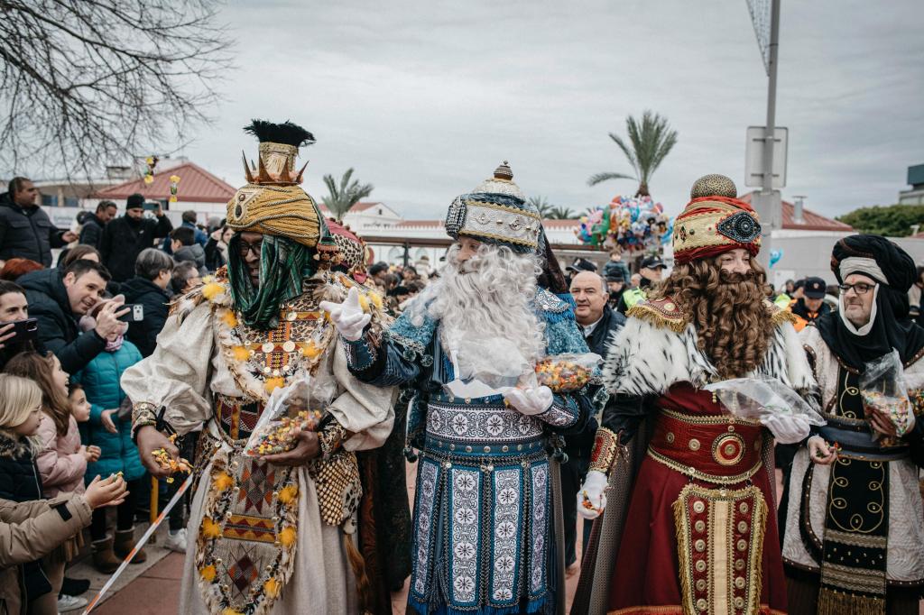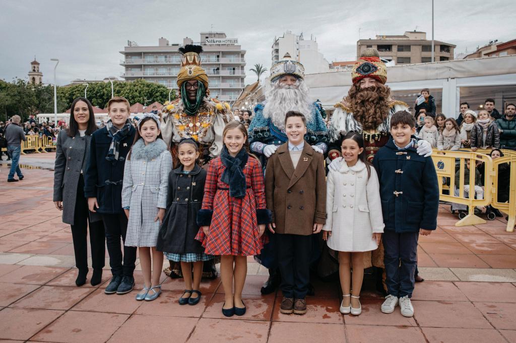 Cientos de niños se han congregado desde primera hora de la tarde en la Plaza del Mar para esperar con ilusión la llegada de Sus Majestades de Oriente, que han saludado cariñosamente a los más pequeños a su desembarco.