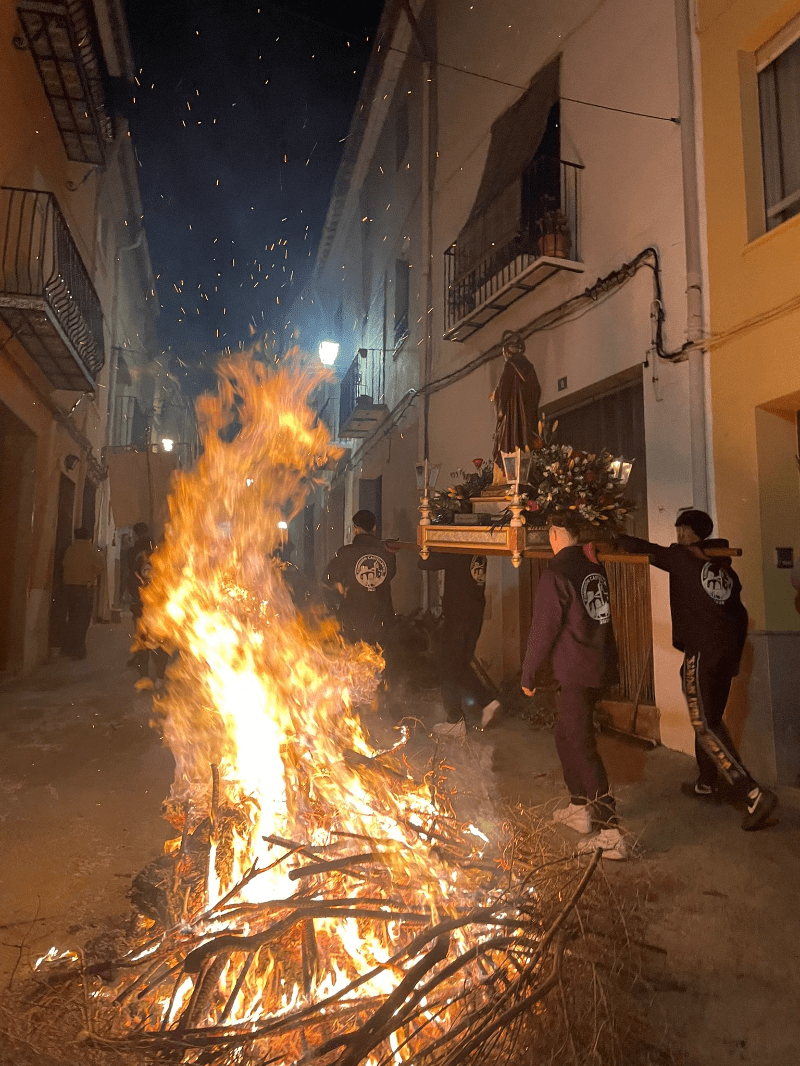 Castellnovo ofrendó al patrón de los animales según marca la tradición con actos en su honor, entre los cuales se cuentan también eventos festivos y taurinos que comenzaron el viernes por la noche. Así pues, el fuego de las hogueras iluminó un fin de semana arraigado en la identidad del municipio del Alto Palancia.
