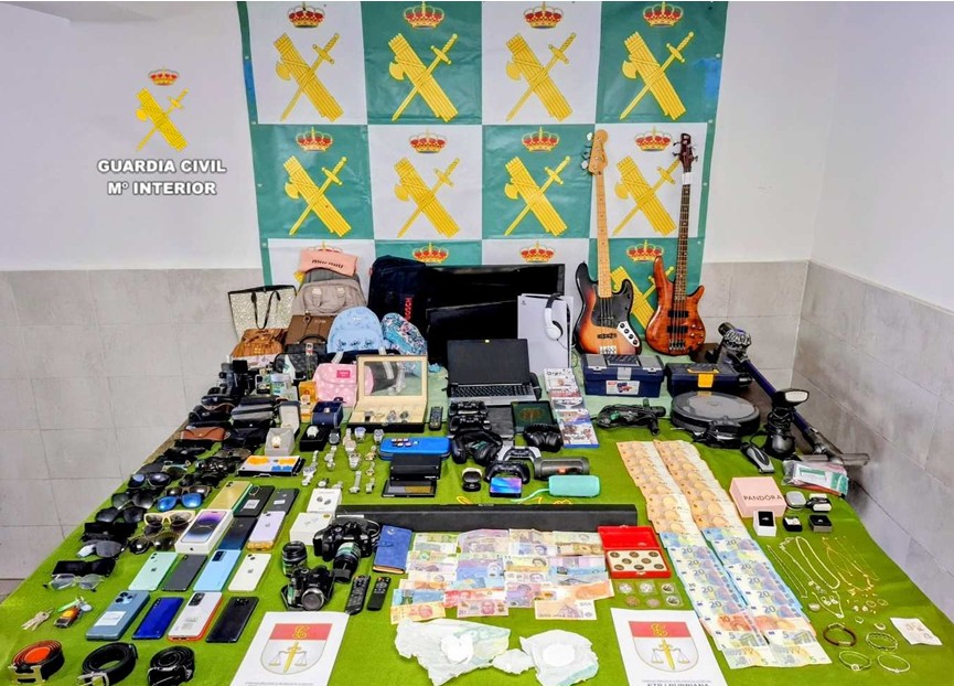 Durante los registros se intervinieron numerosos efectos relacionados con los delitos investigados, entre ellos relojes, bolsos, teléfonos móviles, perfumes, piezas de joyería y bisutería, ordenadores, gafas y otros electrodomésticos.