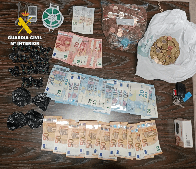 Durante la actuación, los guardias civiles comprobaron que el establecimiento carecía de actividad hostelera real, observando que los distintos espacios estaban destinados presuntamente a la preparación y distribución de dosis de cocaína. En el interior de la cocina no se halló material alimenticio alguno y, en el microondas, se localizaron diversos útiles empleados para la manipulación de la sustancia, tales como bolsas, alambres de color verde y una báscula de precisión con restos de polvo blanco.