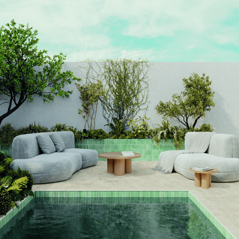 Desde esa calidez terrenal, el recorrido evoluciona hacia una dimensión más orgánica y sensorial con Sabil. Aquí la cerámica parece moldeada por el tiempo, con matices únicos y esmaltes de gran riqueza matérica que capturan la luz de forma cambiante. En formatos 5×15 cm y 2,8×15 cm, la colección transita entre tonos luminosos como Flour, Vanilla o Cloud, verdes intensos como Viridian y Jungle y el profundo Ultramarine. Las variantes Fit y Rounded Edge, con relieves y cantos suavizados, amplifican los reflejos y convierten la superficie en una experiencia viva.
