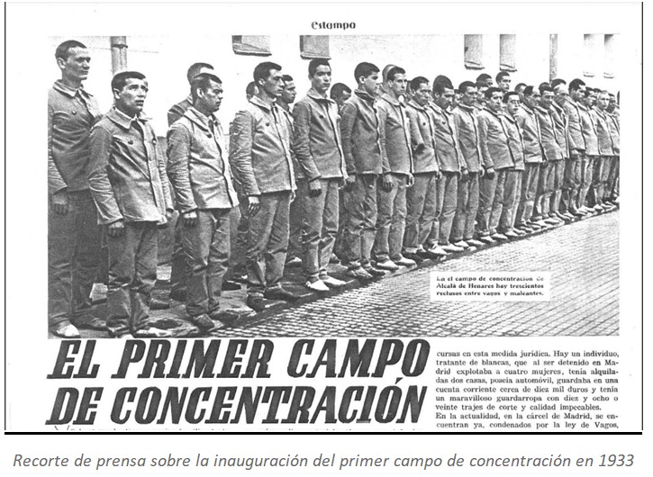 Con ese fin, se creó en la localidad madrileña de Alcalá de Henares, justo un año después, en agosto de 1934, el primer campo de concentración. En dicho establecimiento, los ingresados se dedicaban a trabajos forzados, eso sí, sin percibir compensación económica.