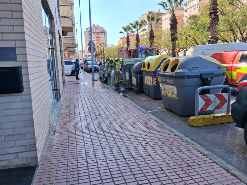 El incendio fue de pequeña dimensión pero preocupaba su cercanía con un vehículo aparcado y de los contenedores de basura.